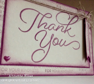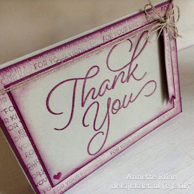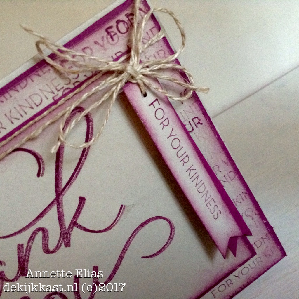De tekst en het bannertje stempelde ik met Designer Tin of Cards en Thoughtful Banners, en ponste ik uit met de Duet Banner Pons. Makkelijk en bij deze kaart veel leuker dan een rechte tekst!