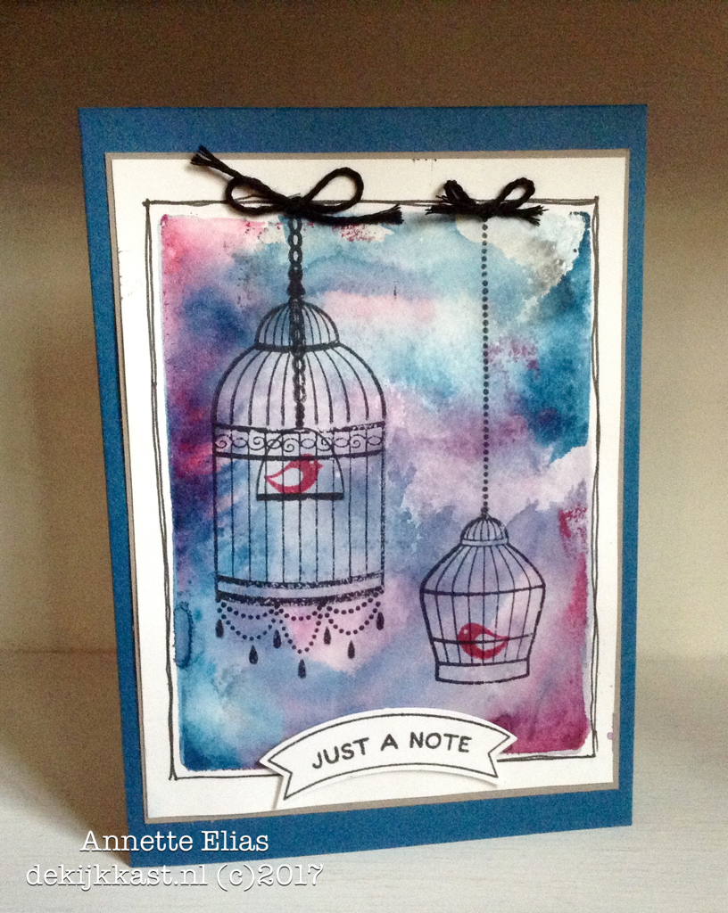 Deze kaart maakten we pas in een Kijkkast-Stempelclub Workshop! We leerden allerlei manieren om mooie achtergronden te maken.