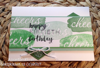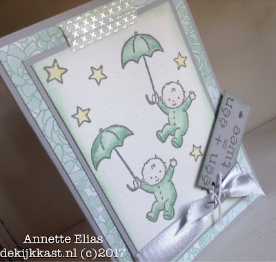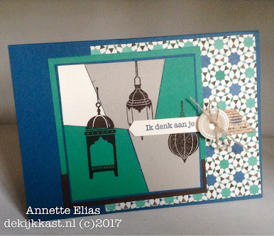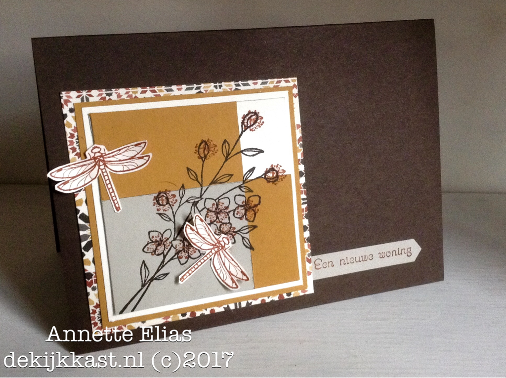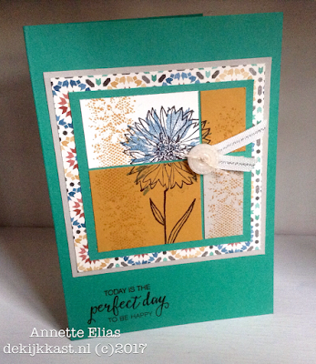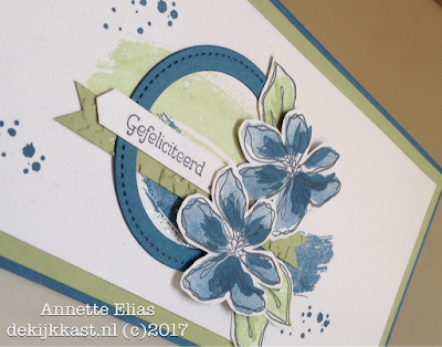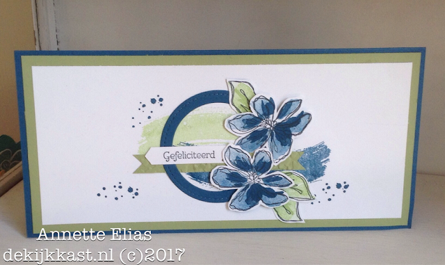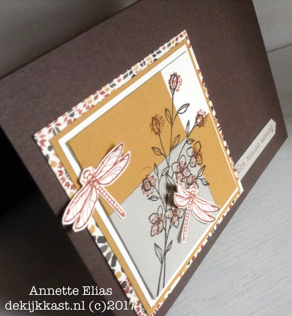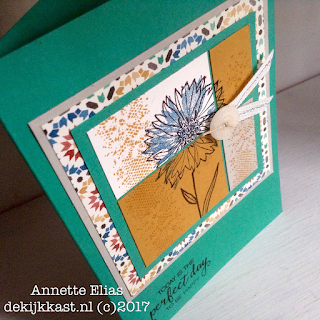Er is lekker gemixed op deze kaart met uiteenlopende kleuren stempels en dies... Want ook nieuwe combinaties maken dat je je stempels optimaal gebruikt. En dat is natuurlijk ook de bedoeling van je mooie materialen... Niet in de kast laten liggen maar gebruiken!