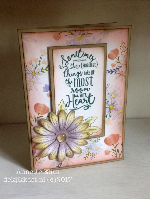 Het schitterende Designer Series Paper komt trouwens ook uit de Delightful Daisy Suite. Wat een geweldige, lieve kleurtjes en designs! Er zitten watercolorachtige papiertjes bij, vintage achtige designs, frisse motiefjes en romantische  varianten. Allemaal even mooi en makkelijk om zo Daisy kaartjes in uiteenlopende stijlen en sferen te maken, of er gewoon helemaal je eigen ding mee te doen!.